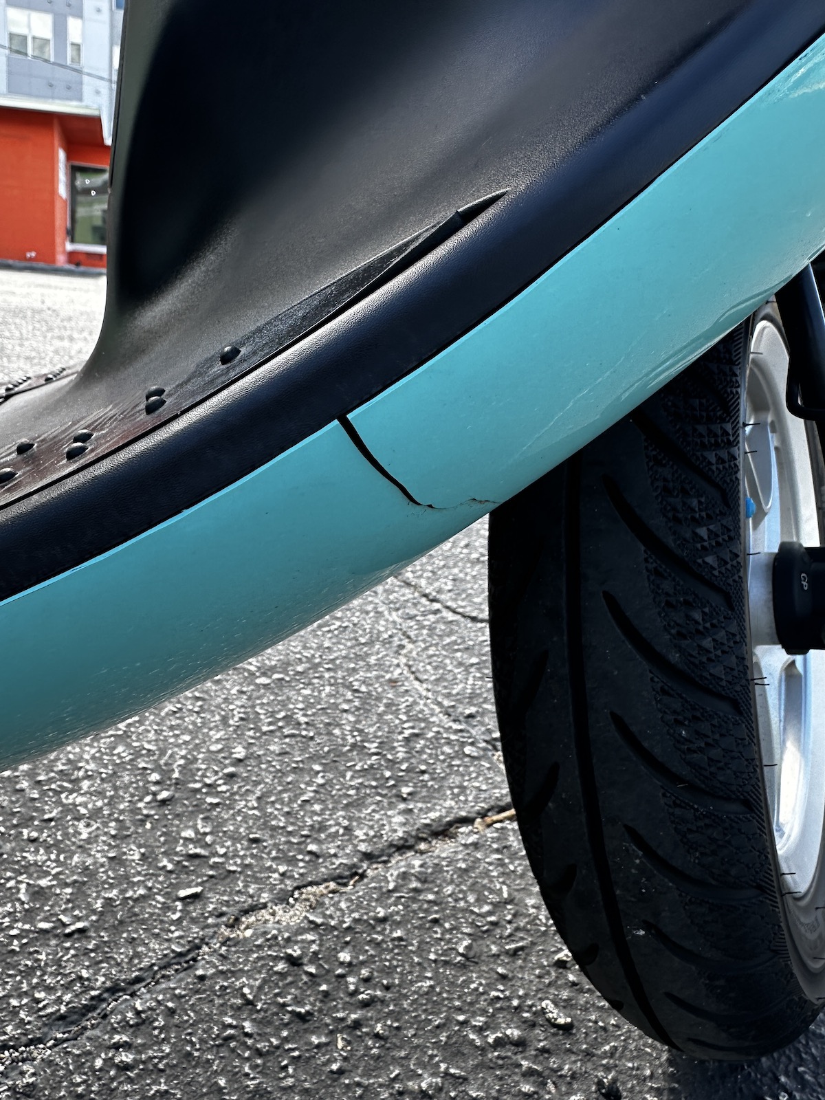 One small crack on the lower right side. Normal wear and tear and overall great condition!! Only 1514 miles!! Come check this beautifui scooter out today.